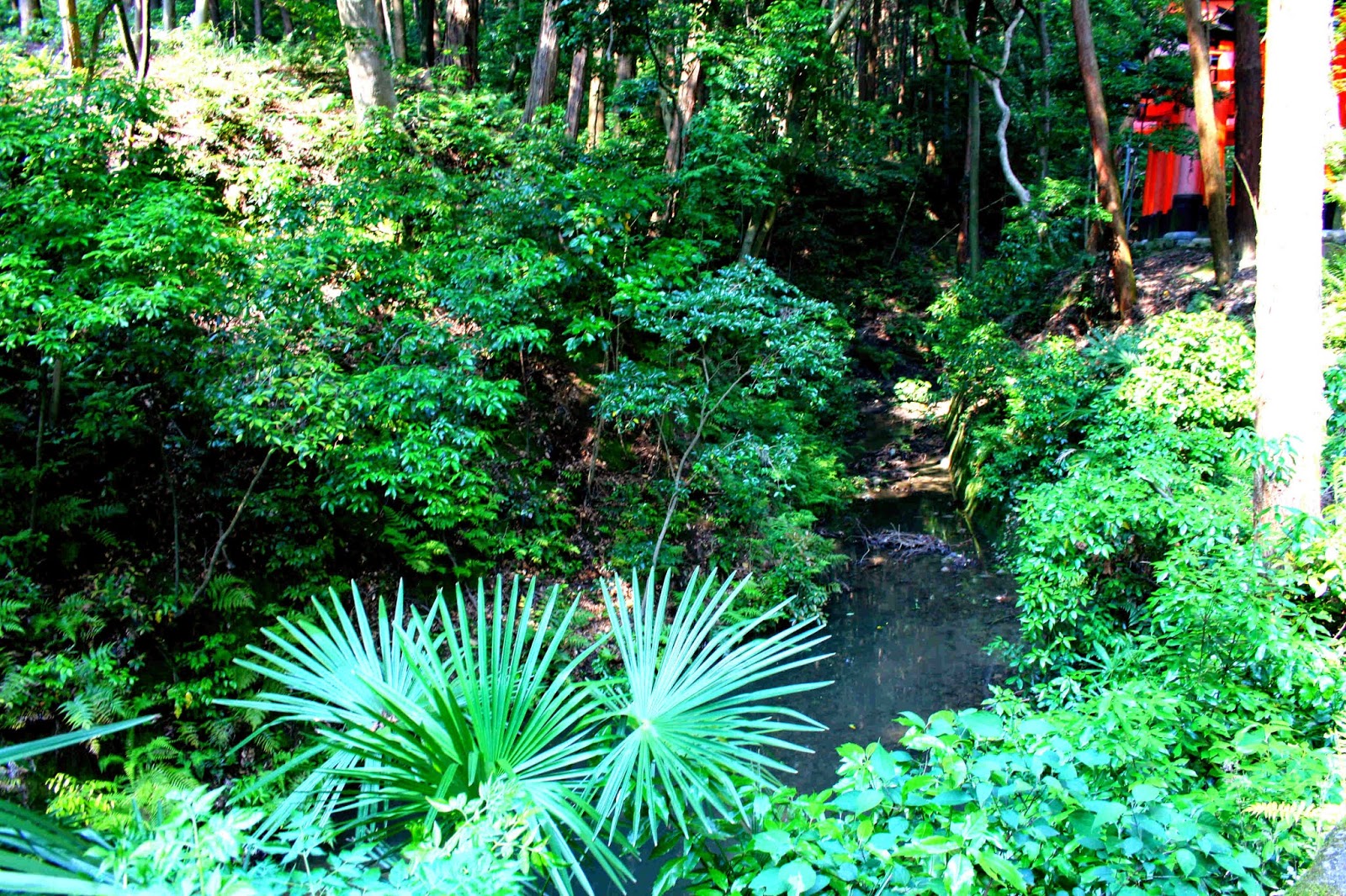 When we finished a little photo shoot of the garden of Ginkakuji we continued our trip on the bicycle in the hills of west Kyoto. The Philosophers’ Path is near Ginkakuji and I saw some nice photos of it and read about it in a guidebook or online, I can’t really remember. We tried to find it but got lost and decided to just make our way to Nanzen-ji. We then encountered the Philosophers’ Walk by chance, but weren’t aware of it until after a while. I thought it would be a nice path between trees and a small river, which it was, but the canal, not river, was dry and there was a road next to it where we were riding, so it wasn’t as ideal as I had pictured it. And the path itself was closed off. So it isn’t really worth going all the way there to see it, I don’t know why people actually recommend seeing it except when the cherry blossoms are in bloom.